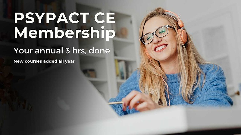 7 CoursesMeet your annual PSYPACT CE requirements with technology in psychology CEs. Ongoing and unlimited access to our course library with new content added all year.